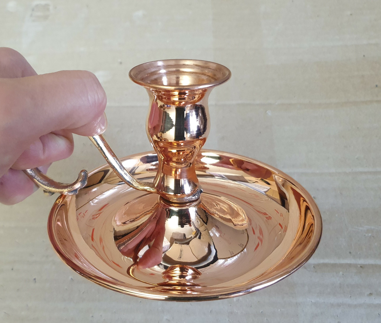 Свічник мідний. Висота - 8см, вага - 155г, діаметр блюдця - 13см